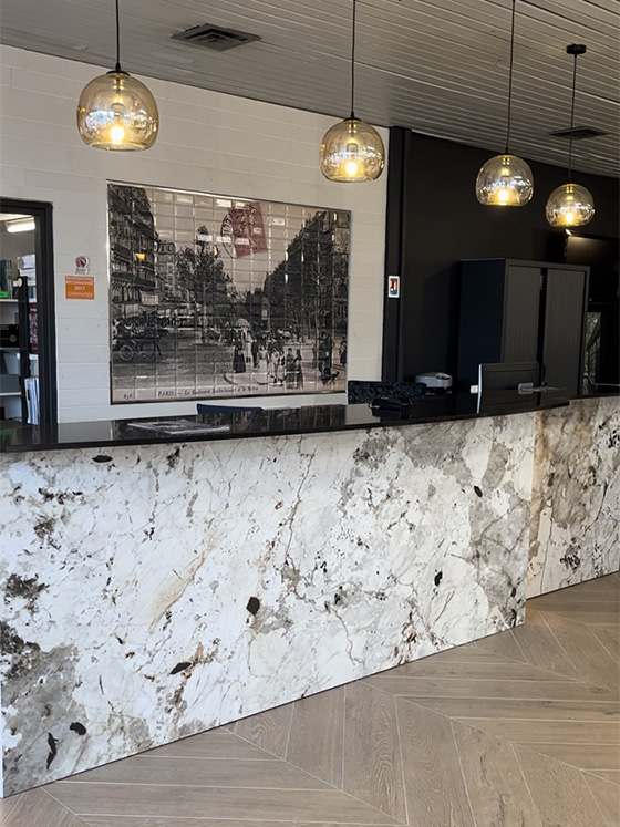 Avec ses 1000 m² d’exposition, le showroom offre une variété de produits de qualité inégalable tel que carrelage, faïence, sanitaires, meuble de salle de bain, accessoires, robinetterie, outillage, colle, joints etc.